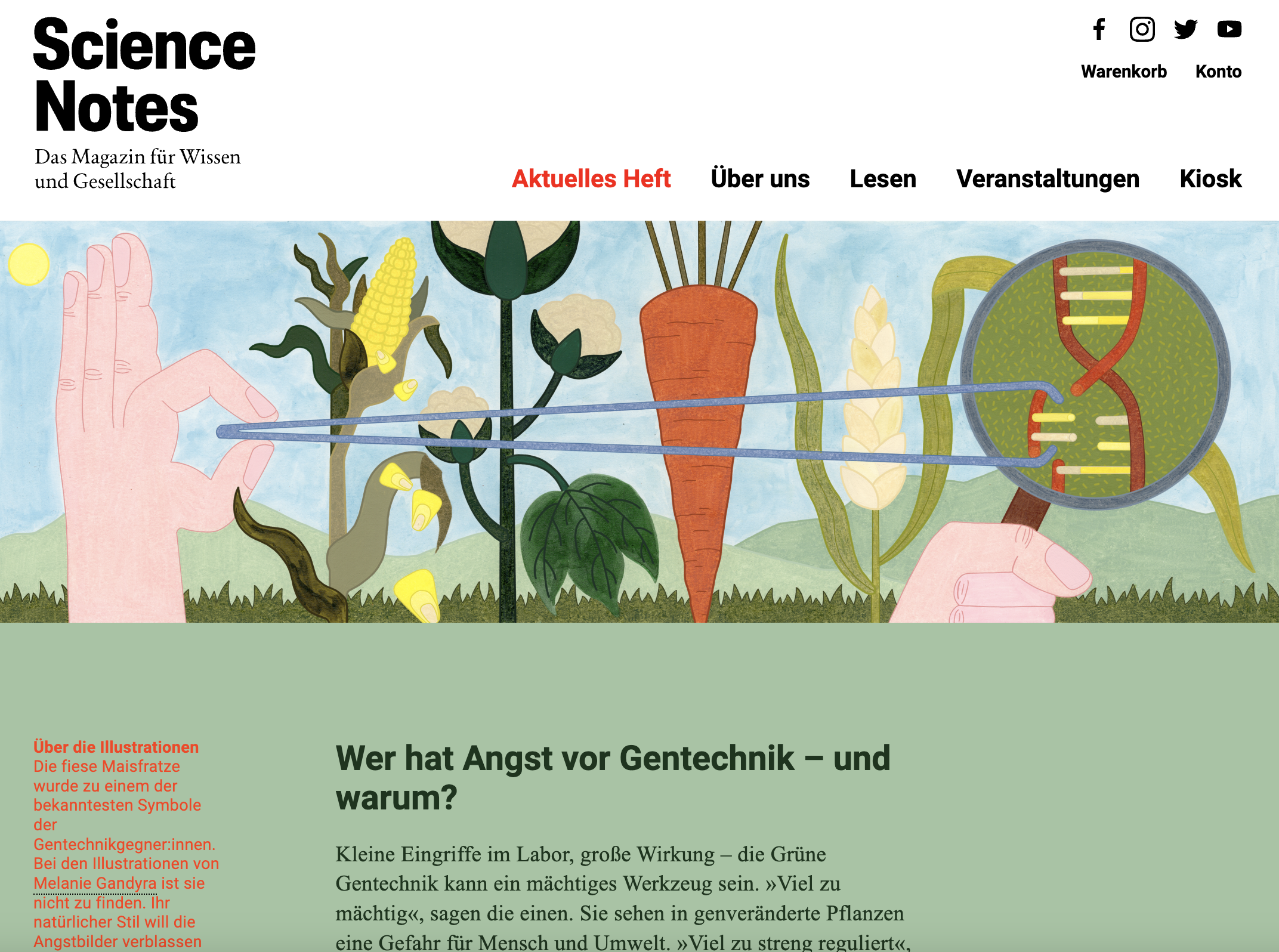 Together with Science Notes Magazin I worked on 14 illustrations about green genetic engineering for their